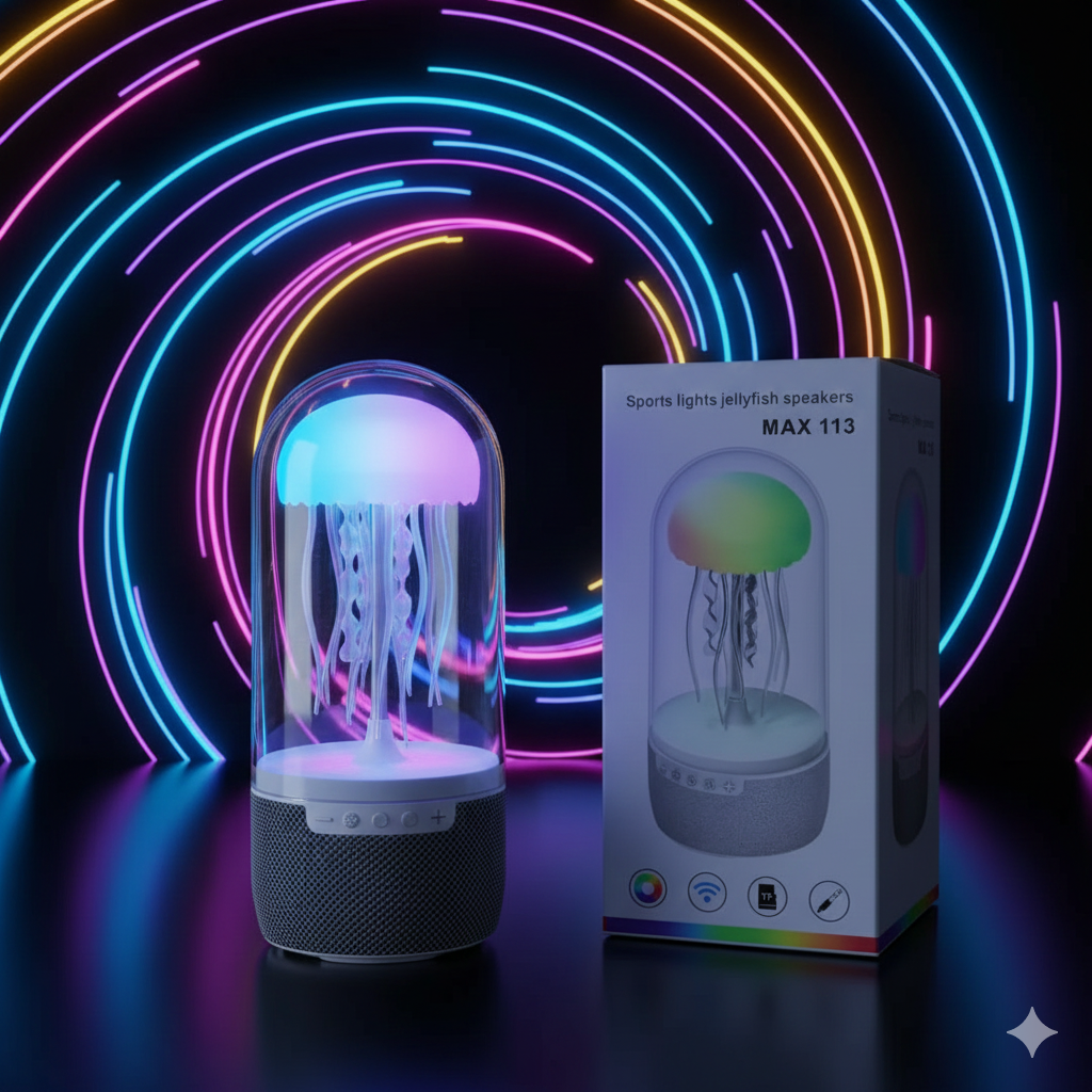 Lámpara cápsula con medusa 3D que une luz ambiental relajante y parlante integrado en un solo producto elegante, ideal para crear espacios acogedores y modernos sin recargar dormitorios, escritorios ni salas de estar.